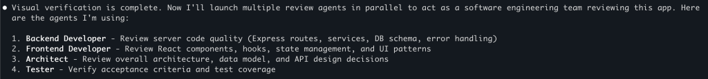 Just look at this! It’s not just generating boilerplate, it literally spawned four distinct “personalities” to architect this app in parallel.